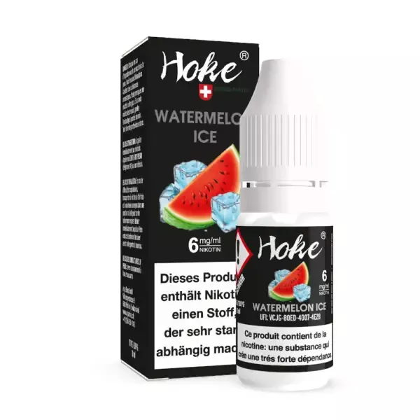 Hoke Liquid 10ml – Watermelon Ice hat einen Nikotingehalt von 6mg/ml und schmeckt nach Wassermelone mit Eis. Wenn Sie auf der Suche nach hochwertigem E-Liquid für Ihren Vape sind, ist Hoke Liquid die perfekte Wahl. Das Schweizer Liquid wird in der Schweiz hergestellt und garantiert somit höchste Qualität und Reinheit. Hoke Liquid bietet eine breite Auswahl an 30 verschiedenen Geschmacksrichtungen mit einem Nikotingehalt von 6mg/ml.